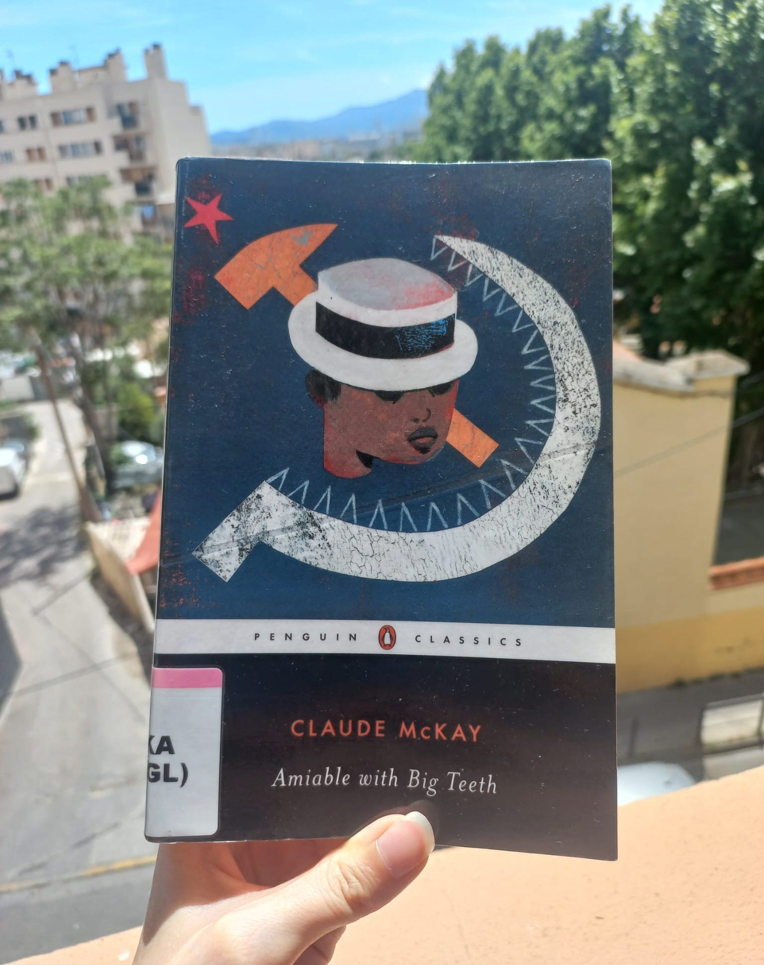 Amiable with Big Teeth is a previously unpublished book by Claude McKay, Jamaican-American writer and poet active in the 1910s-40s and part of the Harlem Renaissance. As you might be able to guess from the cover, it talks about black people and the communist movement.